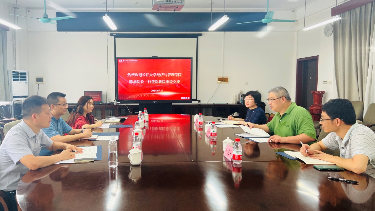 陈承介绍了必赢565net官网网站加快推进特色高水平大学建设的现实背景,以及学院的基本情况和发展现状。他表示,通过此次调研学习,深入了解了广西大学工商管理学院在治理体系建设、学科专业建设、师资队伍建设、人才培养改革等方面的先进经验,为必赢565net官网网站的建设发展提供了很好的经验借鉴。之后,双方围绕跨学科融合发展、高端人才引进、有组织的科学研究、博士点申报、拔尖人才培养以及科研合作等进行了深入交流。