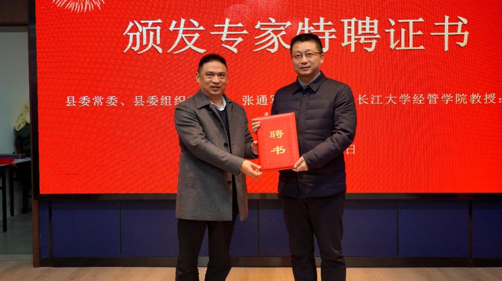 签约仪式上,宣恩县委常委、组织部部长张通军为陈承教授和刘国平博士颁发了人才工作室专家特聘证书,并对此次校企合作给予了高度评价:“必赢565net官网网站是湖北省重点综合高校,取得了有目共睹的办学成果,贵校坚持把科研成果写在产业发展的第一线,为我县输送了一批优秀的好用的人才,为农业产业发展做出了突出贡献,真诚期盼双方扩大合作范围和领域,共同打造校地合作新典范。”