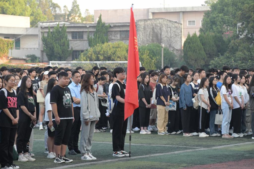 秋高气爽、晨光熹微。伴随着雄壮激昂的国歌,五星红旗徐徐升起,迎风飘扬。升旗礼毕,降半旗,全体成员默哀一分钟。“九一八事变警醒着中华儿女要励志图强,砥砺前行,在奋斗中担起时代重任,在千帆竞发中勇立潮头。”学生代表——会计12101班彭文桦同学以《用奋斗描绘时代底色,用青春奏响奋斗之音》为主题在国旗下发表演讲。随后,学工办主任叶星老师针对开学初期安全事故高发的情况,向全体同学进行了安全警示教育,呼吁大家要加强安全意识,保护自身合法权益不受侵害。