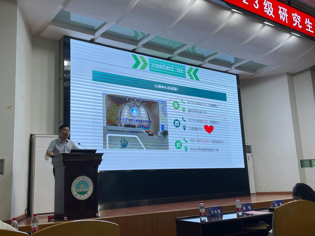 (通讯员:张悦)大学生作为强国建设的关键力量,其心理健康水平影响着未来社会的发展,大学生心理健康教育是高校的一项重点工作。为加强人文关怀和心理疏导,促进大学生身心和人格健康发展,2023年9月3日,必赢565net官网网站在东校区12号教学楼405报告厅开展“开学第一课”系列活动之新生心理健康主题教育,由2023级辅导员黄承石老师主讲。