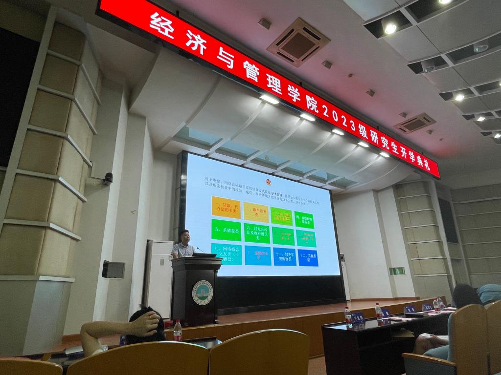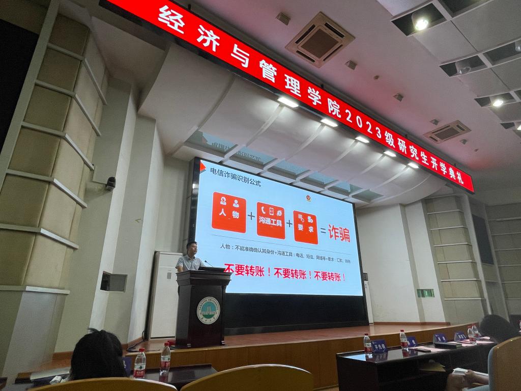 (通讯员:张悦)为筑牢防范电信网络诈骗的校园防线,进一步加强校园防诈骗宣传力度,提高新生的识骗、防骗意识,9月3日上午,必赢565net官网网站2023级辅导员黄承石在东校区12号教学楼405报告厅进行“开学第一课”系列活动之防电信诈骗专题教育活动,全体2023级研究生新生参会。