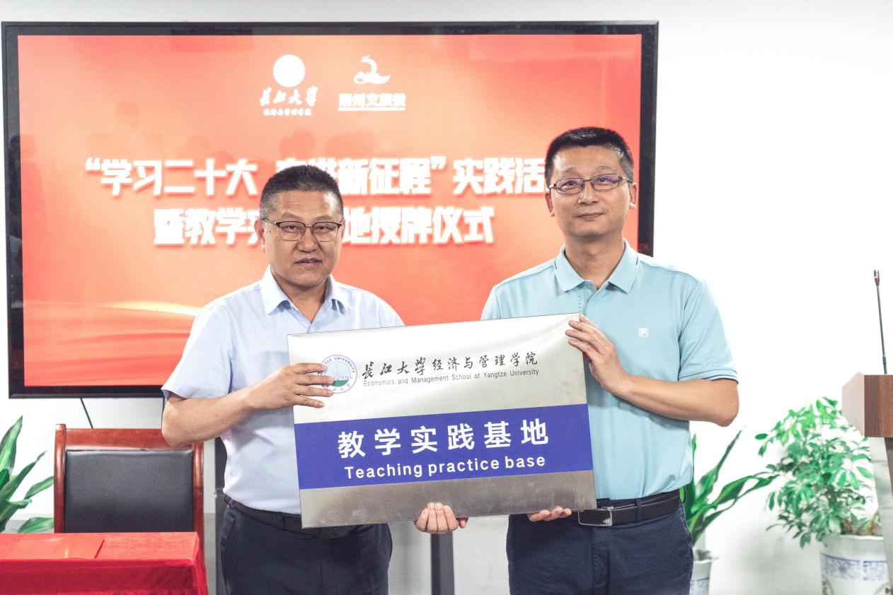 (通讯员 黄胜胜 唐丹)为提高学院本科生实践能力、提升本科人才培养质量,增进校地校企合作,必赢565net官网网站与荆州文化旅游投资有限公司于2023年5月25日下午15:00在荆州市沙市区洋码头文创园会议室隆重举行实践基地授牌仪式。荆州文旅投副总经理余波,副总经理董文及荆州文旅投职能科室负责人,必赢565net官网网站副院长陈承,王萍、彭德春、胡云、黄胜胜四位老师出席仪式,必赢565net官网网站2020级市场营销专业30名学生参加授牌仪式,仪式由荆州文旅投副总经理董文主持。