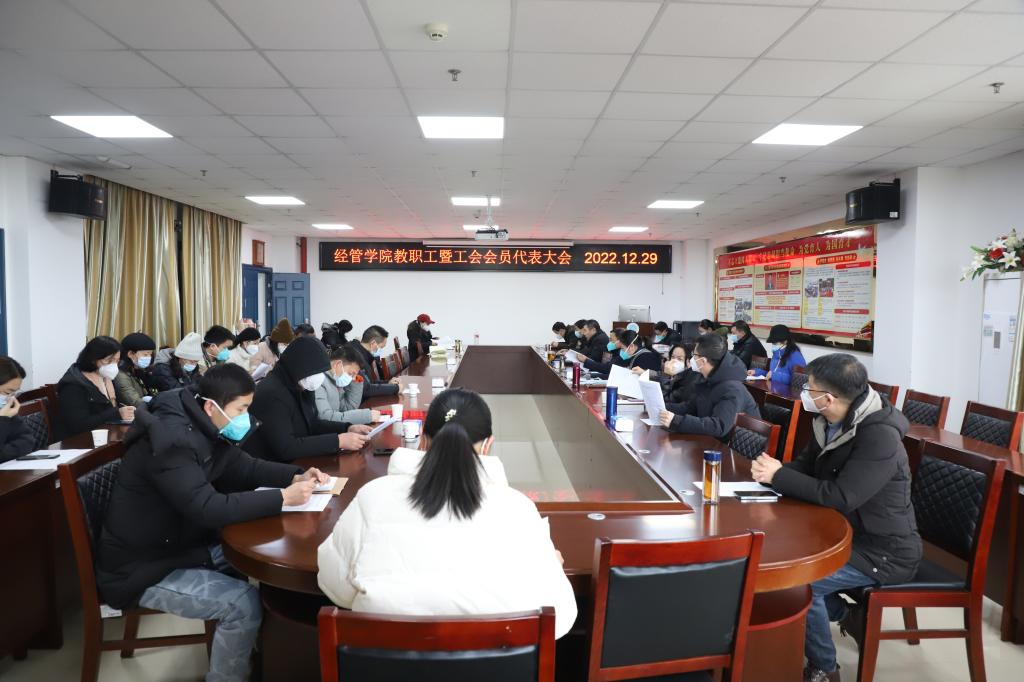2022年12月29日下午15:00,必赢565net官网网站在文科大楼505会议室组织召开教职工暨工会会员代表大会,34名教职工代表到场参加会议,大会由党委书记樊帆主持。