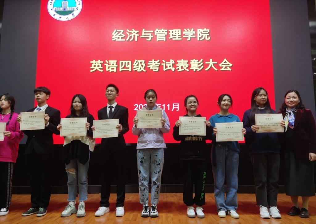 首先举行必赢565net官网网站2020级英语四级考试表彰大会,王中梅副书记、叶星老师、贺雄老师分别为备考四级标兵班集体代表、先进班集体代表、学习标兵、优秀组织者颁发奖状,在对他们表示热烈祝贺的同时也对其他班级和个人提出要求,希望同学们以他们为榜样,认真学习,永远不要停下学习的脚步。