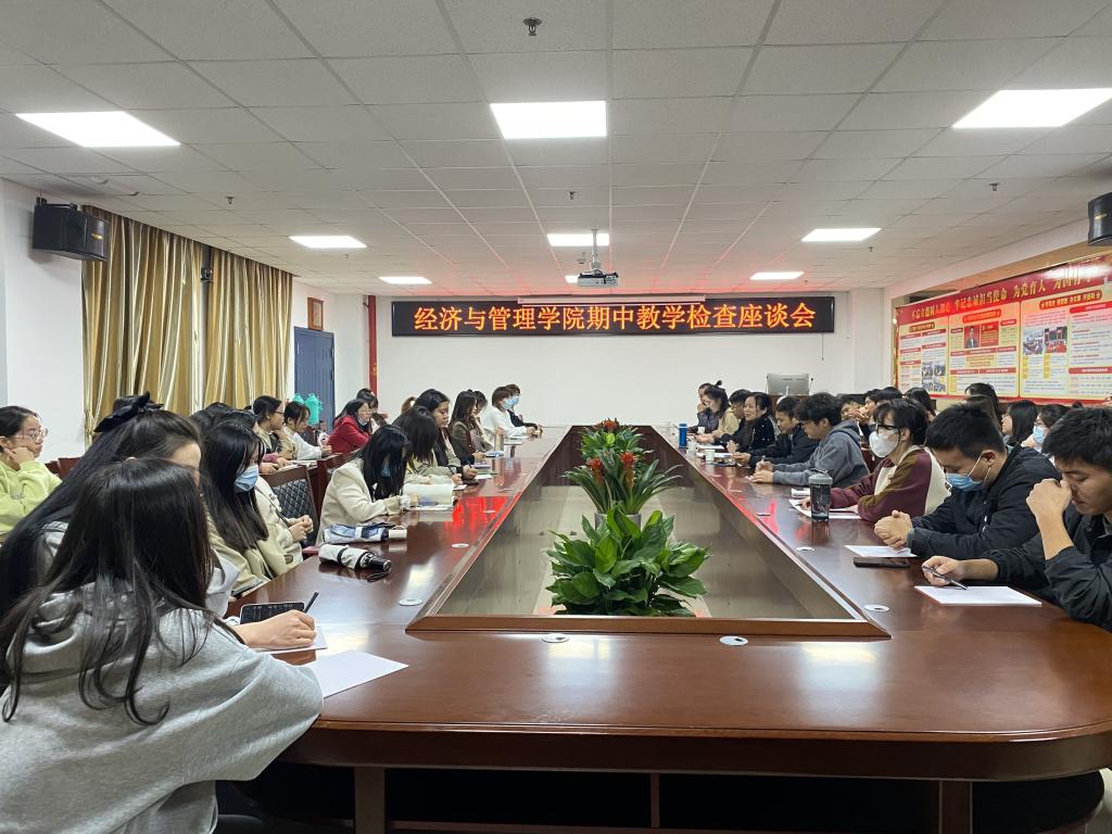 经管学院2021-2022第一学期研究生教学期中检查座谈会于2011.11.4晚19时在文科楼505会议室举行,必赢565net官网网站研究生管理团队(分管副院长裴潇、MBA教育中心主任李洪文、MPAcc教育中心主任叶云、研究生秘书谢本贵/余晶晶、研究生辅导员朱翠玲等)及2020级、2021级研究生代表共60余人参加了此次座谈会。分管副院长裴潇主持了会议。