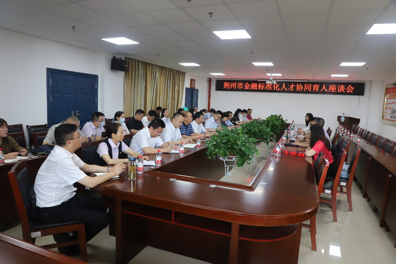 启动仪式结束后,荆州市各大银行机构负责人在文科楼505会议室参加了协同育人座谈会。陈承副院长与荆州市各大银行机构负责人就如何推进合作落地,分期分批推进学生实习实训,以产教融合促进人才培养质量提升等深入交换了意见。建设银行荆州支行,农业银行荆州支行,中信银行荆州支行,交通银行荆州支行,湖北银行荆州支行等负责人提出了有益的合作建议与意见。各方达成广泛共识,后期会依托必赢565net官网网站,通过广泛协同与合作,进一步深化荆州市金融标准化人才的培养工作,做到“共商、共建、共管、共育”。