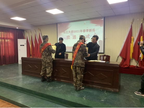 (通讯员 黄承石)2021年3月22日,学校学工部领导和老师代表在荆州区狼牙基地参加了必赢565net官网网站2021年春季新兵入伍欢送仪式。必赢565net官网网站学工部部长徐波、副部长谢作喜、征兵办主任周正江、经管学院征兵负责人黄承石参加了此次欢送会。