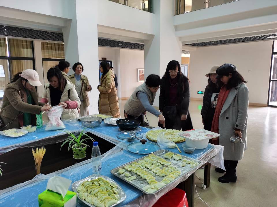 春风和暖,万物复苏,在第111个“国际劳动妇女节”来临之际,学院分工会组织71名女教职工在文科大楼办公大厅包饺子,共庆节日。工会委员们精心安排,女教职工们积极参与,建言献艺,带上自家的锅碗瓢盆,忙碌一整天:白菜馅、香菇馅、韭菜馅、大葱馅......饺子、元宝、包子齐聚,男同胞们也加入队伍,一时之间热闹非凡,老师们都感慨过了一个难忘的节日。