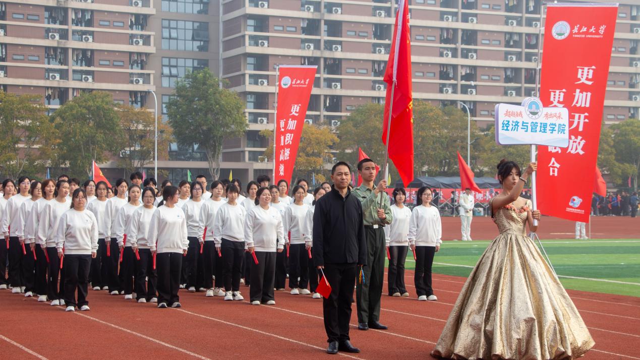 旌旗猎猎,步伐铿锵。开幕式上,必赢565net官网网站方阵以昂扬姿态惊艳亮相,响亮的口号与整齐的步伐,凝聚着全院师生的集体荣誉感,展现出经管人锐意进取的精神底色。