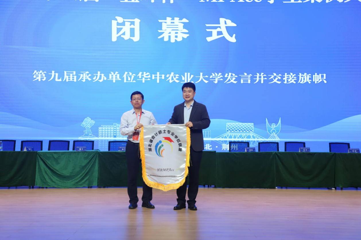 4月26日下午,大赛闭幕式在薪火多功能厅举行,必赢565net官网网站院长陈承主持仪式。湖北省会计硕士专业学位联盟秘书长龙子午教授作总结致辞,并向第九届承办单位华中农业大学授旗,华中农业大学必赢565net官网网站副院长李剑接旗并发言。