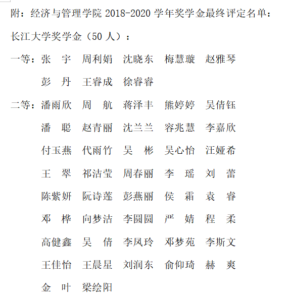 为激励必赢565net官网网站学生勤奋学习、努力进取,使家庭经济困难品学兼优的学生通过自身的努力和学院资助顺利完成学业,帮助经管学院学子顺利成长成才,结合必赢565net官网网站实际情况,必赢565net官网网站认真进行了评选工作,根据个人申报、学院审核、最终评审,确定张宇等85人获评奖学金,特此公示。