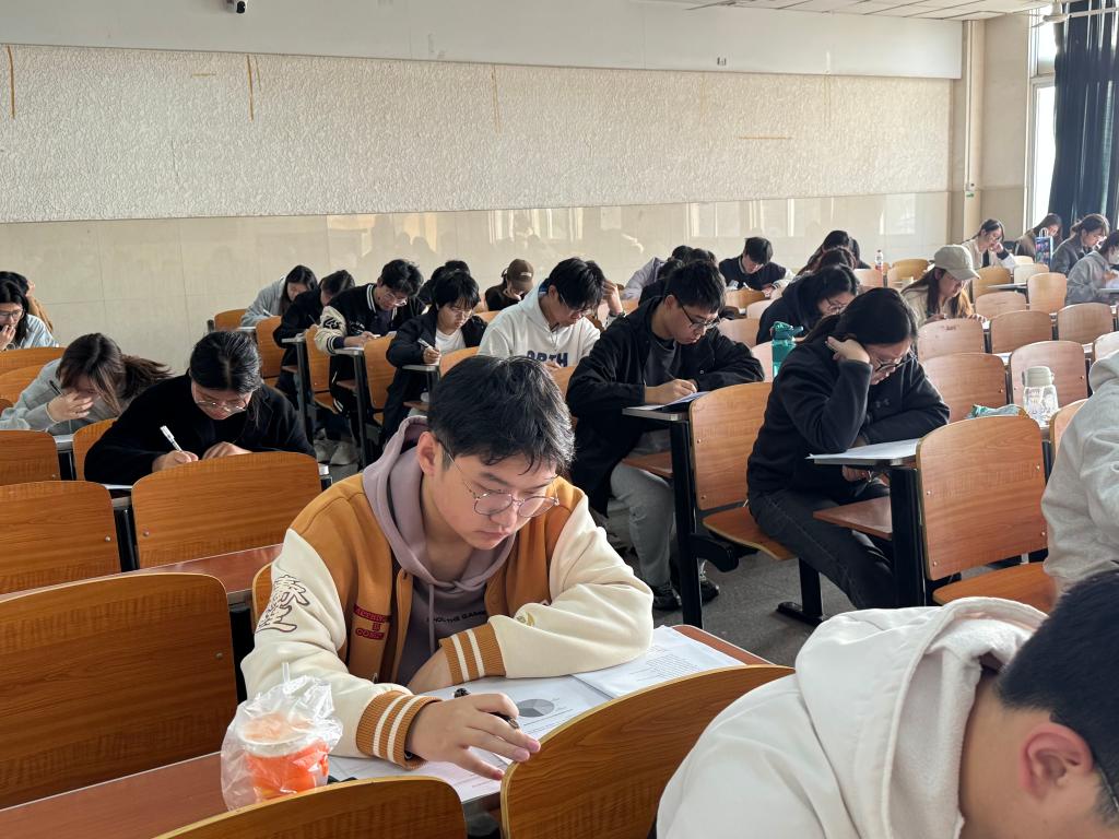 考场上,同学们沉着专注,或凝神思考,或奋笔疾书,展现出良好的应试状态。本次模拟考试高度还原真实考场环境,帮助同学们在“准实战”中查找知识盲区、检验复习成效,并锻炼对考试节奏的整体把控能力。