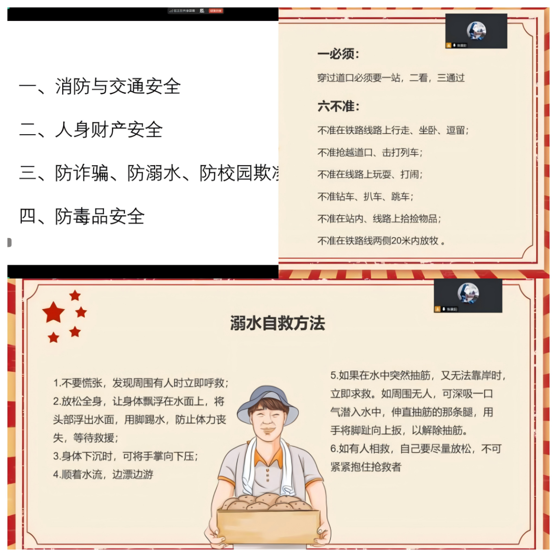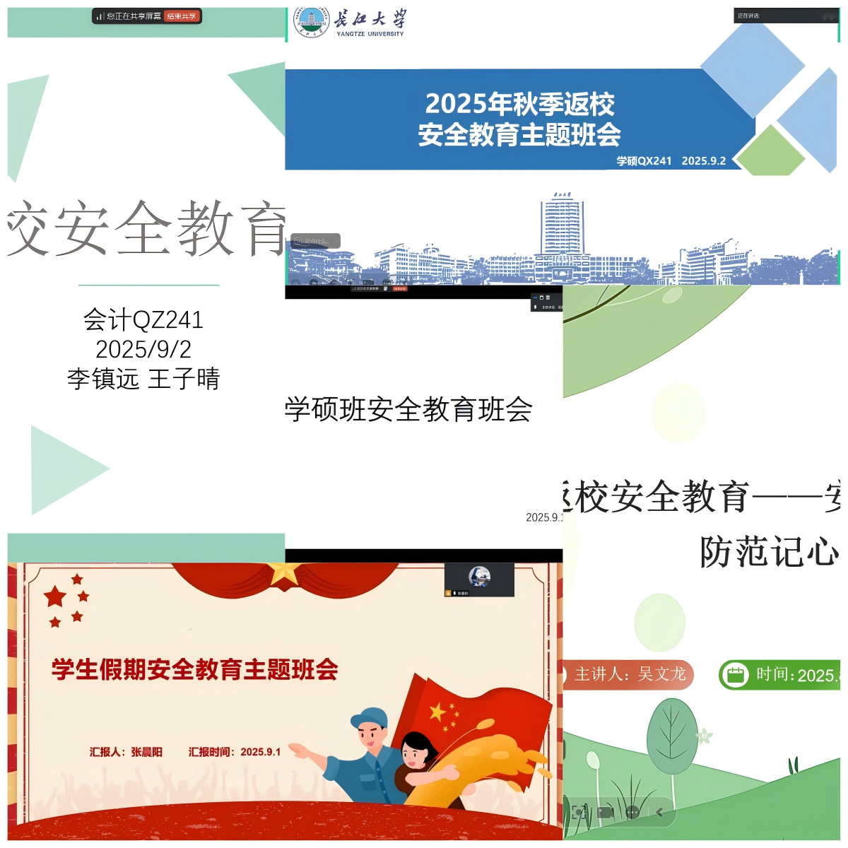 (通讯员 陈梦冉)为切实提升研究生安全意识与自我防护能力,保障秋季学期开学返校工作安全有序,近期,学院研究生班级以线上形式全覆盖召开开学返校安全教育班会。各班班长主持会议,围绕安全防护、健康自检、返校规范三大核心内容展开讲解,为新学期安全有序开局夯实基础。