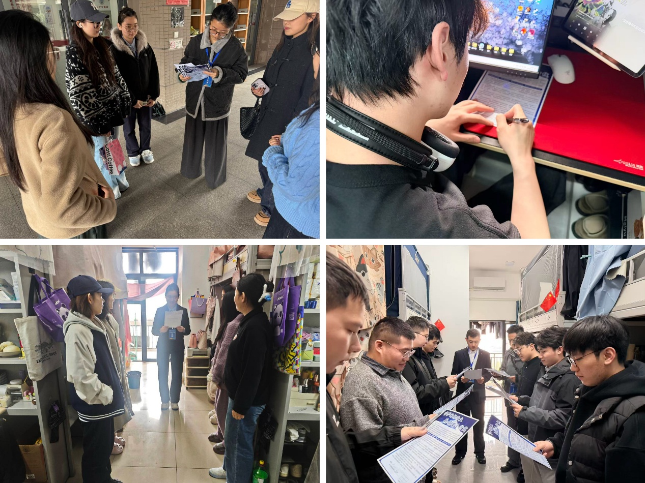 活动尾声,宣讲团向各寝室发放网络安全宣传材料,同学们签名承诺后将材料张贴在寝室醒目位置,让网络安全意识入脑入心。本次活动切实提升了研究生的网络安全防范意识与防护能力,后续学院将持续推进安全教育常态化开展,进一步织密筑牢校园安全防护网。