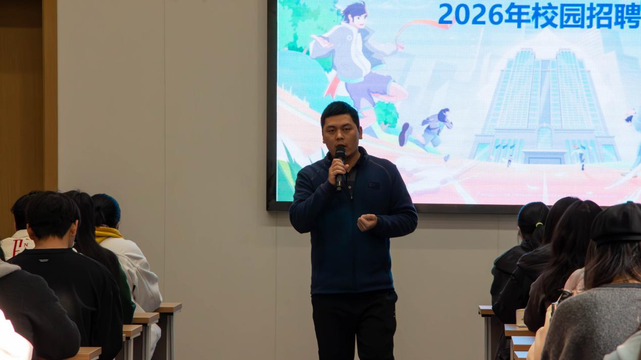 随后,各企业代表依次上台进行招聘宣讲。通过图文并茂的展示,企业代表们详细介绍了企业发展历程、核心业务、文化理念及招聘需求,特别针对法学相关岗位(如法律事务专员、合规顾问、风控助理等)的职责要求、专业能力标准进行了重点解读,充分展现了行业前景与对复合型、专业型人才的重视。宣讲过程中,企业代表们与经管、法学专业学生互动频频,针对 “金融行业法律风险防控”“企业合规体系建设” 等跨领域问题展开深入解答,现场气氛热烈,掌声不断。